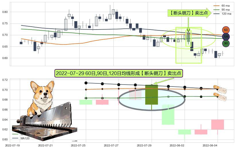 形态多维评估: ⚀ 2022-07-29日显现 60日-90日-120日均线 【断头铡刀】卖出点 看空信号,后市看跌,卖出