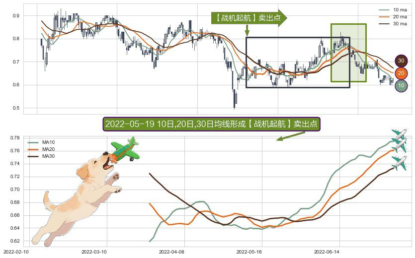 形态多维评估: ⚀ 2022-03-25日-2022-07-05日显现 10日-20日-30日均线 【战机起航】卖出点 看空信号,后市看跌,卖出