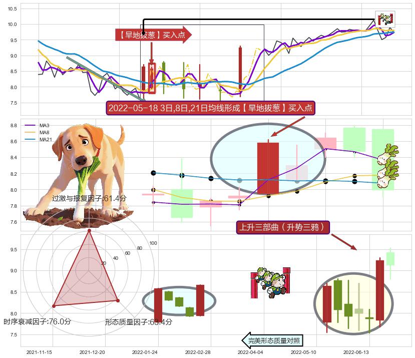 | 3 🅚:上涨孤独十字星 ➕ 🎢:【旱地拔葱】买入点均线组合买入点信号形成后,猜想后续向上脱离整理形态,持续突破上升 ☞ 看多信号 ⇥ 【均线】交织【🅚线】⇥ 综合量化分数: 51 | > |