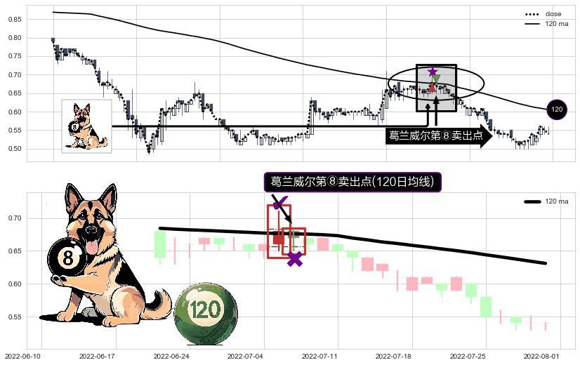 ⚀ 2022-07-06-日显现 葛兰威尔均线 120日均线 第⑧卖出点 下降趋势的中继信号,后市看跌,卖出信号
