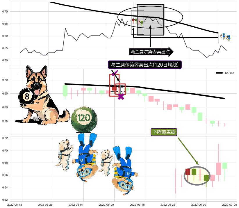 | 3 🅚:射击之星形态 ➕ 🎢:葛兰威尔第⑧卖出点卖出点信号形成后,猜想后续持续下行(趋势跟踪) ☞ 看空信号 ⇥ 【均线】交织【🅚线】⇥ 综合量化分数: 40 | > |