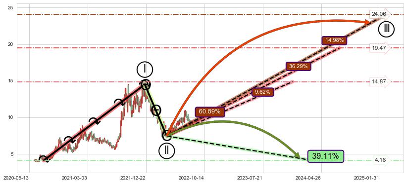 ➣ AI预测: 假定反转启动后, 第❸目标位置(2024-05-07, 14.50)