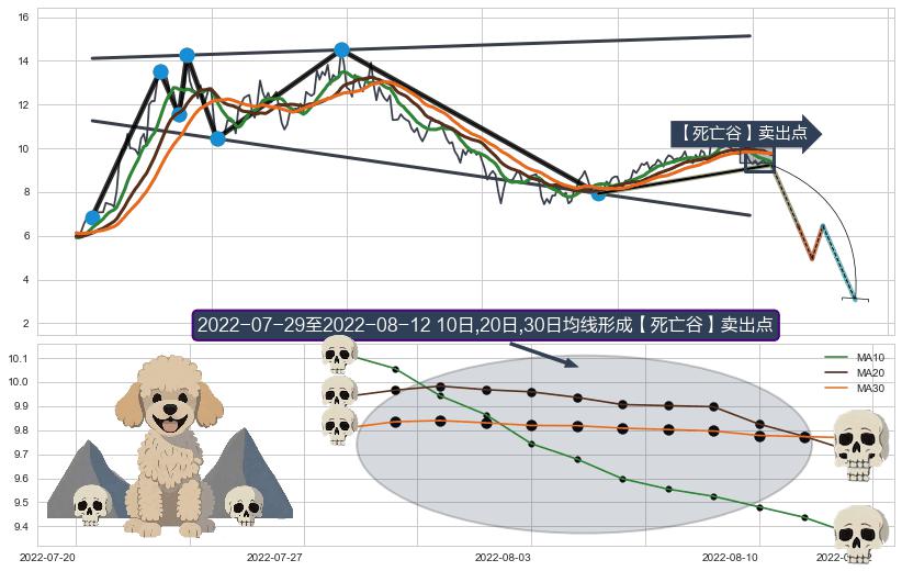 | 3 🅚:【死亡谷】卖出点 ➕ 🌊:波浪理论下跌5浪延续:猜想C点强阻力小反弹终止,猜想保持下跌5浪方向下行(均值回复后大周期继续趋势跟踪) ☞ 看空信号 ⇥ 【均线】交织【图形】⇥ 综合量化分数: 31 | > |