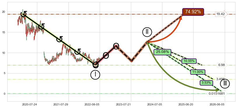 ➢ 高概率大级别循环下跌浪被破坏,反转向上(突破5浪起点)概率74.92%