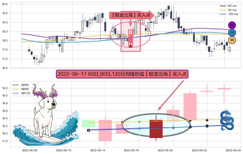 形态多维评估: ⚀ 2022-06-17日显现 60日-90日-120日均线 【蛟龙出海】买入点 看多信号,后市看涨,买入