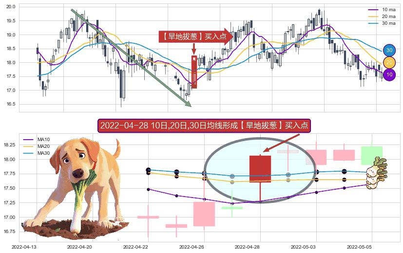 形态多维评估: ⚀ 2022-04-28日显现 10日-20日-30日均线 【旱地拔葱】买入点 看多信号,后市看涨,买入