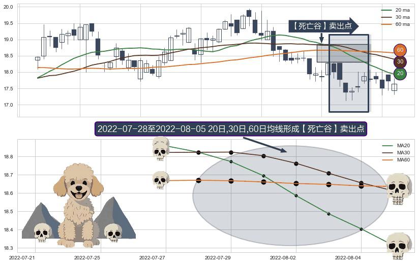 形态多维评估: ⚀ 2022-07-29-日至2022-08-05-日显现 20日-30日-60日均线 【死亡谷】卖出点 看空信号,后市看跌,卖出