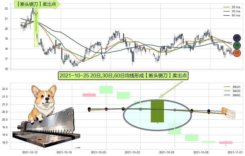 形态多维评估: ⚀ 2021-10-25日显现 20日-30日-60日均线 【断头铡刀】卖出点 看空信号,后市看跌,卖出