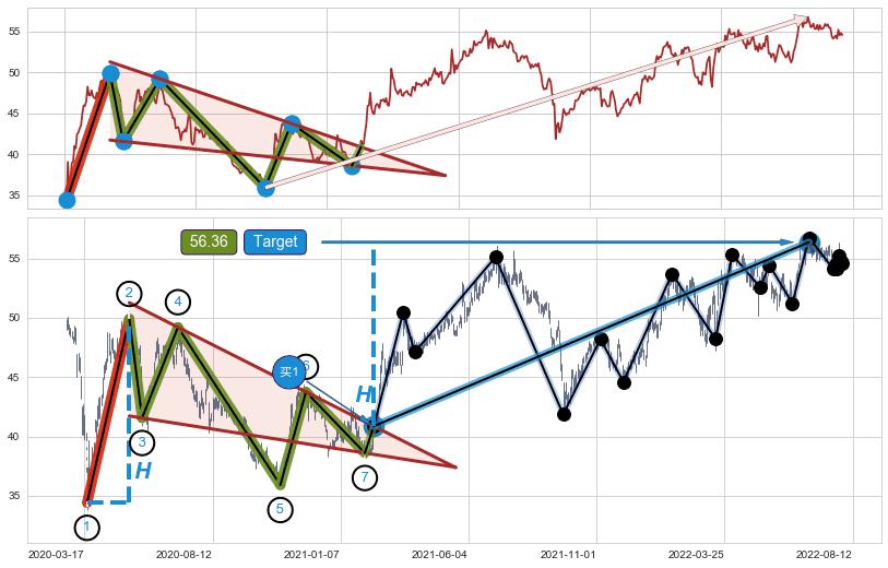 ➢ AI预测: 假定反转如期而至,第❶价格目标位置(2022-10-24, 48.79)