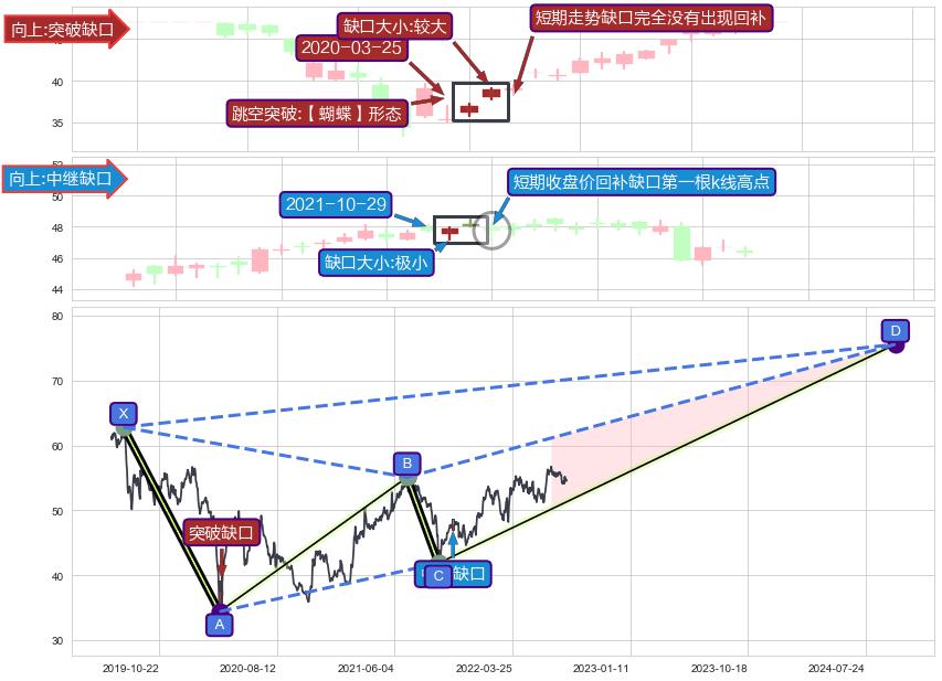 ➢ 【蝴蝶】形态 🔜 中继缺口 🔜 突破缺口 综合量化分数:52.30 【中性】