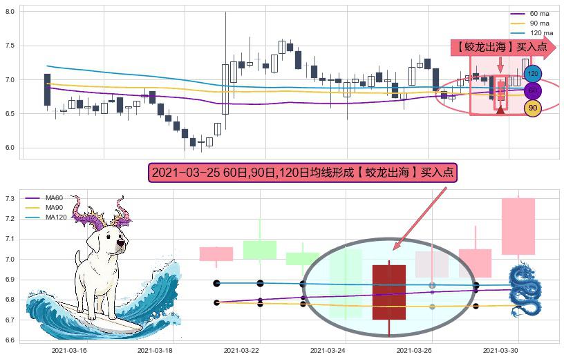 ⚀ 2021-03-25日显现 60日-90日-120日均线 【蛟龙出海】买入点 看多信号,后市看涨,买入