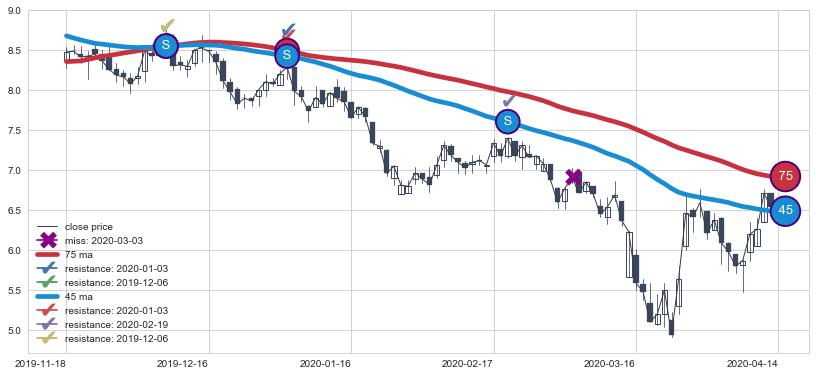 ⚂ 2021-03-16-日均线向下破位,2021-03-25-日重新上穿突破均线,均线支撑再次生效