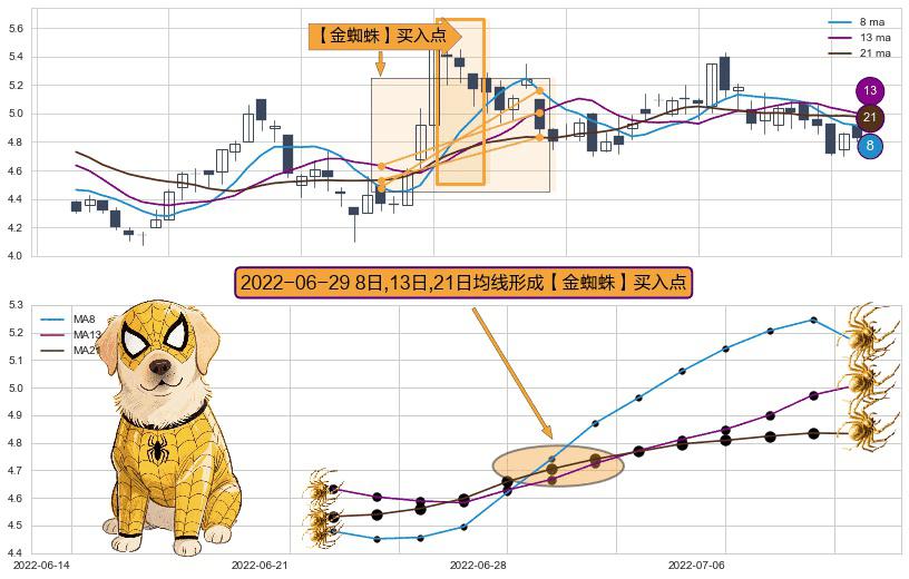 ⚀ 2022-06-29日显现 8日-13日-21日均线 【金蜘蛛】买入点 看多信号,后市看涨,买入