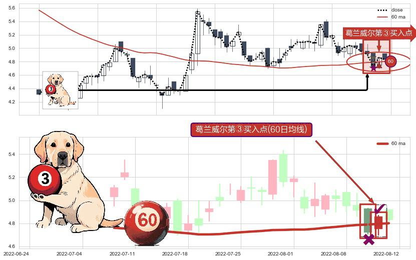 ⚀ 2022-08-11-日显现 葛兰威尔均线 60日均线 第③买入点 上升趋势的中继信号,后市看涨,买进信号