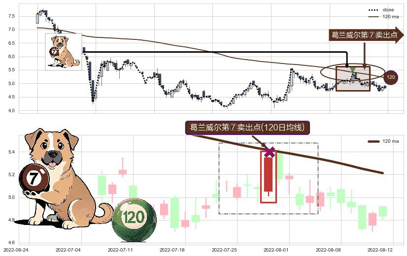 ⚀ 2022-07-28-日显现 葛兰威尔均线 120日均线 第⑦卖出点 下降趋势的中继信号,后市看跌,卖出信号