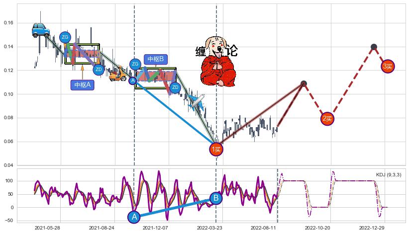 ➣ 【已完成】缠论 起点:2021-04-23,完成第1中枢A,完成第2中枢B,终点:2022-03-15,缠论共221交易日
