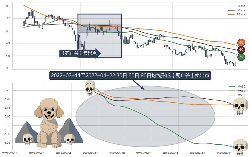⚀ 2022-03-14-日至2022-04-22-日显现 30日-60日-90日均线 【死亡谷】卖出点 看空信号,后市看跌,卖出