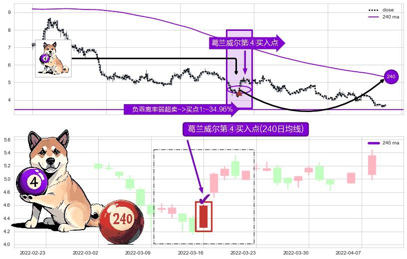 ⚀ 2022-03-16-日显现 葛兰威尔均线 240日均线 第④买入点 下降趋势均值回复的短线反弹信号,后市看涨,买进信号