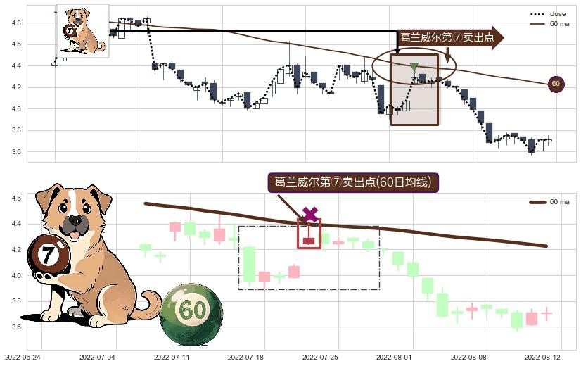 ⚀ 2022-07-21-日显现 葛兰威尔均线 60日均线 第⑦卖出点 下降趋势的中继信号,后市看跌,卖出信号