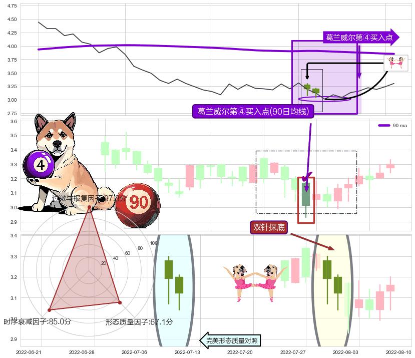 ➢ 低点影线(2022-04-08: 4.19 )→回踩→第二根k线低点(2022-04-07: 4.25 )