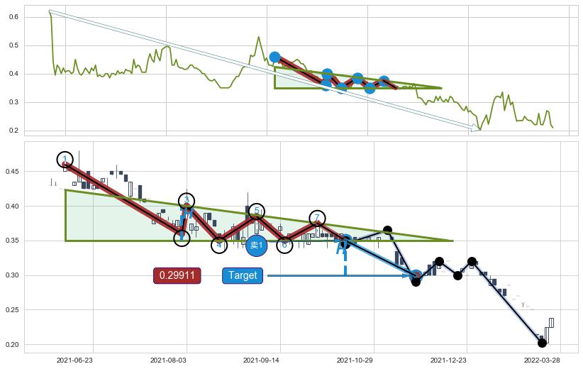 ➣ D点拟合预测价格0.159976,距离最后交易收盘价格0.210000相差 -23.82%