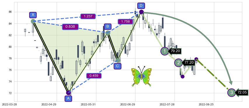 ➣ 已完成【蝴蝶】形态起点X: 2022-04-08, 终点D: 2022-07-05, 共56交易日