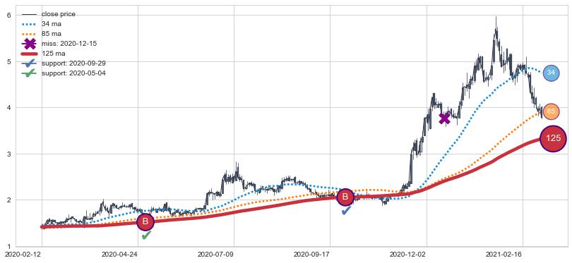 上涨趋势2021-05-10-2021-07-22,均线34确认关键支撑1处