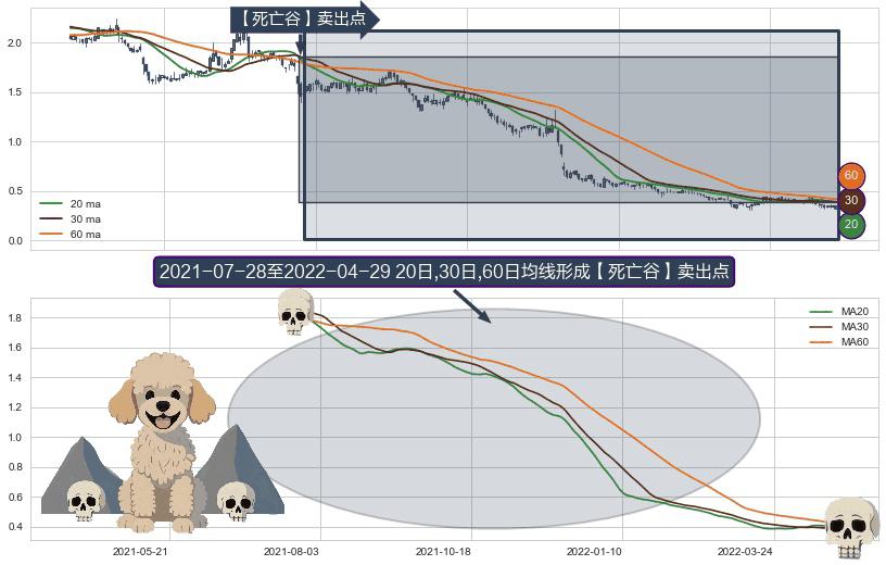 ⚀ 2021-07-29-日至2022-04-29-日显现 20日-30日-60日均线 【死亡谷】卖出点 看空信号,后市看跌,卖出
