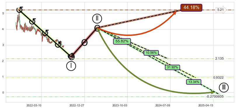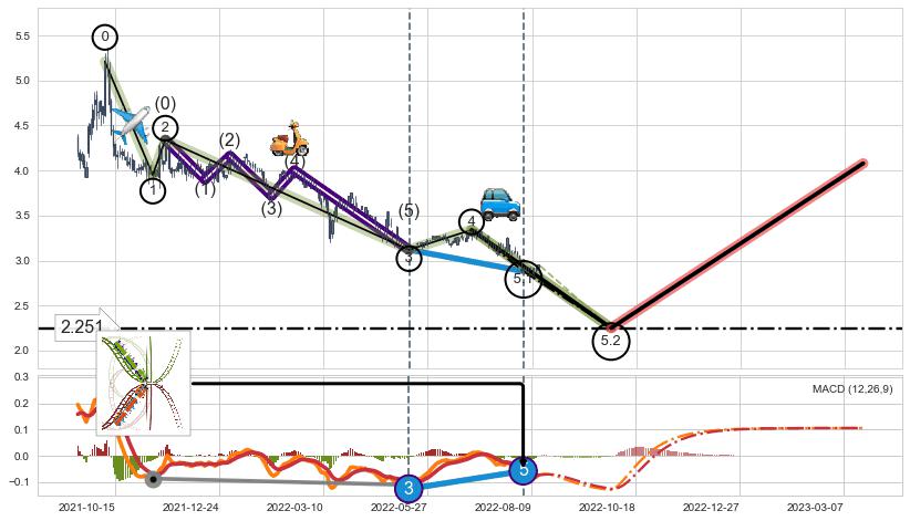 ➣ 5.1: 预测当前第5浪位置(2022-08-03, 2.880),仍然有下跌空间