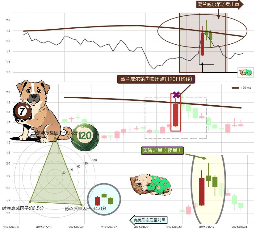 | 4 🅚:黄昏之星(夜星) ➕ 🎢:葛兰威尔第⑧卖出点卖出点信号形成后,猜想后续持续下行(趋势跟踪) ☞ 看空信号 ⇥ 【均线】交织【🅚线】⇥ 综合量化分数: 43 | > |