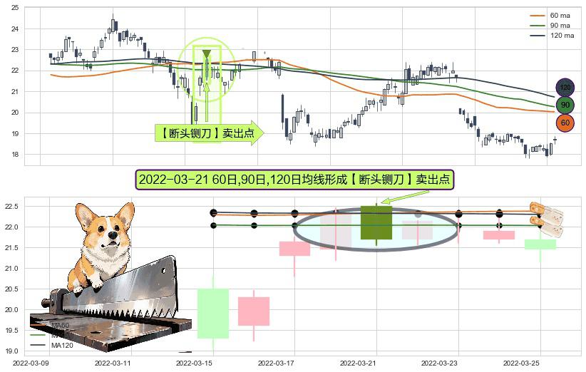 ⚀ 2022-03-21日显现 60日-90日-120日均线 【断头铡刀】卖出点 看空信号,后市看跌,卖出