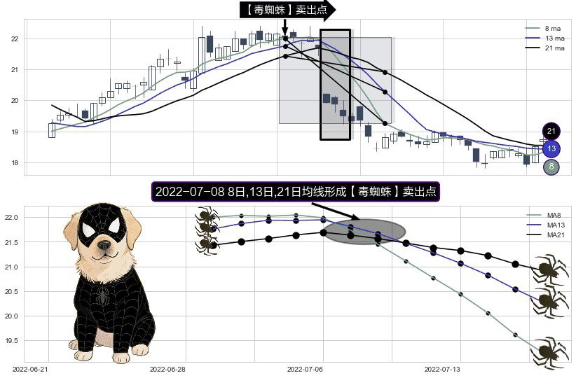 ⚀ 2022-07-08日显现 8日-13日-21日均线 【毒蜘蛛】卖出点 看空信号,后市看跌,卖出