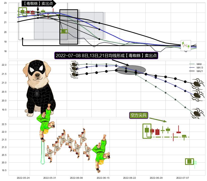 | 2 🅚:吊颈线(上吊线) ➕ 🎢:【毒蜘蛛】卖出点均线组合卖出点信号形成后,猜想三条均线周期内的交易者都看空后市,持续下跌 ☞ 看空信号 ⇥ 【均线】交织【🅚线】⇥ 综合量化分数: 41 | > |