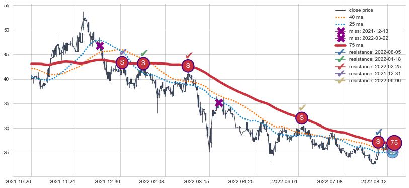 ⚂ 2022-06-28-日均线向上突破,2022-08-09-日重新下穿均线破位,均线阻力再次生效