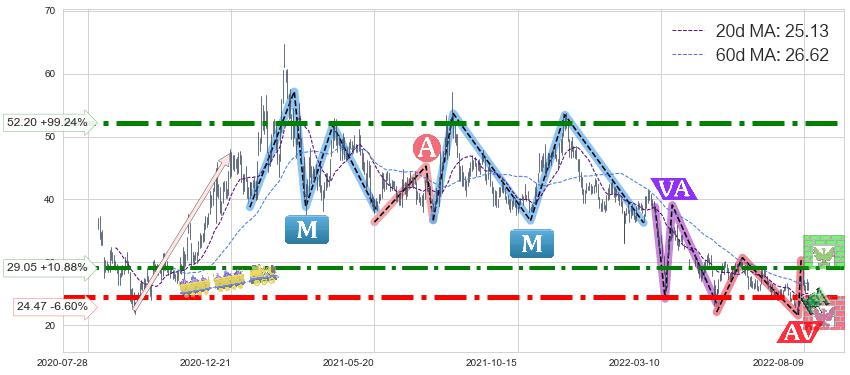 ♘ 支撑价格位24.47,可信任强度92.82%,距离最后交易2022-08-12形成的收盘价格26.20相差 -6.60%