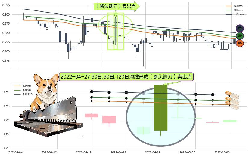 ⚀ 2022-04-27日显现 60日-90日-120日均线 【断头铡刀】卖出点 看空信号,后市看跌,卖出