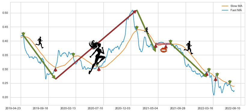 2021-07-09至2022-01-28 慢线与快线呈空头排列, 慢线与快线接触少,无缠绕