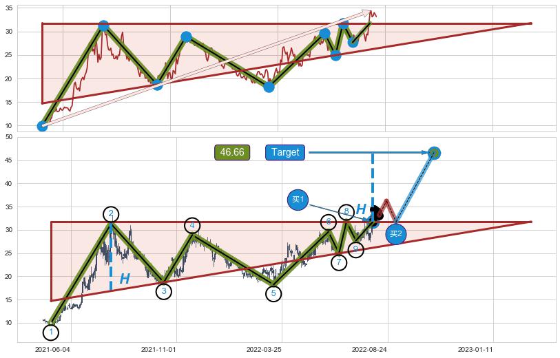 ➢ 【已确认突破】最后价格:33.15与最小【整理】第一目标价格→(2022-10-25: 46.66 )相较: 上涨空间【较大】