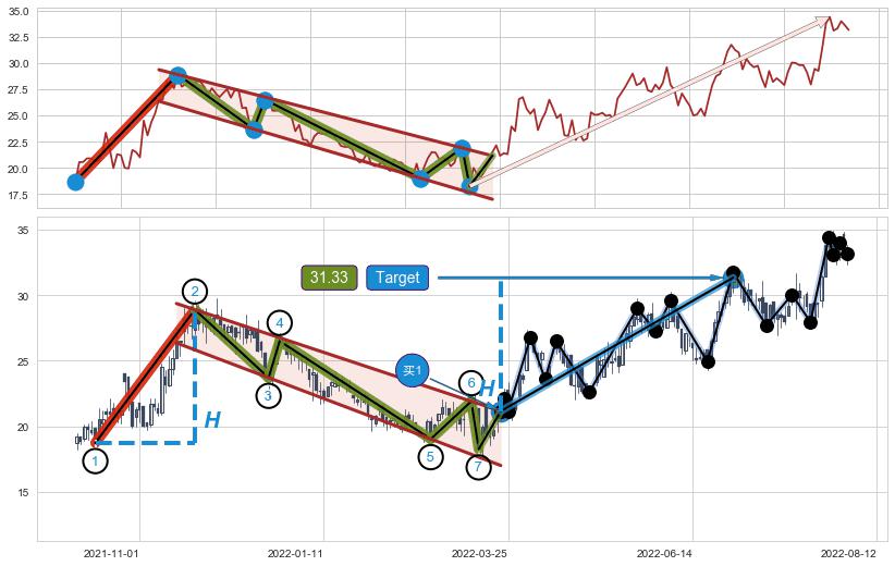 ➣ 最小中继整理涨幅→𝐇: 10.18 (𝐇旗杆的长度:旗杆起点→顶点)