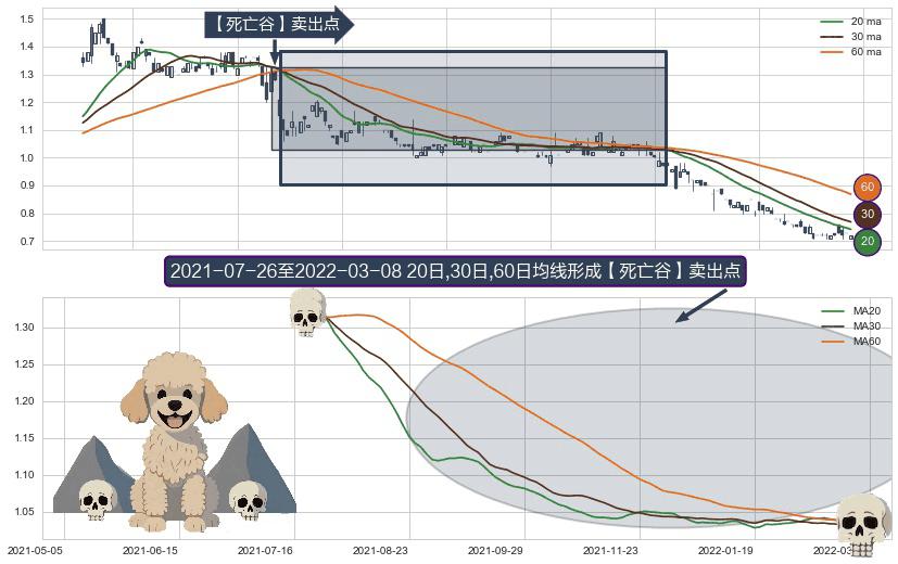 ⚀ 2021-07-27-日至2022-03-08-日显现 20日-30日-60日均线 【死亡谷】卖出点 看空信号,后市看跌,卖出