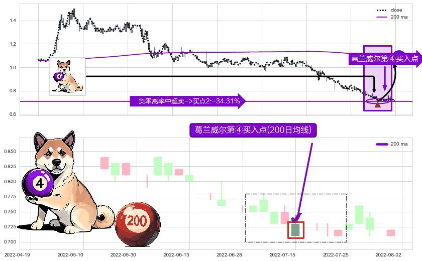 ⚀ 2022-07-15-日显现 葛兰威尔均线 200日均线 第④买入点 下降趋势均值回复的短线反弹信号,后市看涨,买进信号
