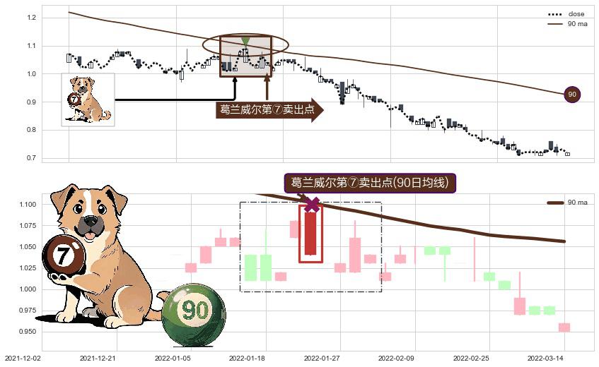 ⚀ 2022-01-24-日显现 葛兰威尔均线 90日均线 第⑦卖出点 下降趋势的中继信号,后市看跌,卖出信号