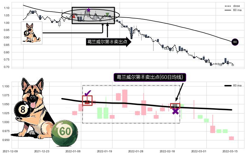 ⚀ 2022-02-18-日显现 葛兰威尔均线 60日均线 第⑧卖出点 下降趋势的中继信号,后市看跌,卖出信号