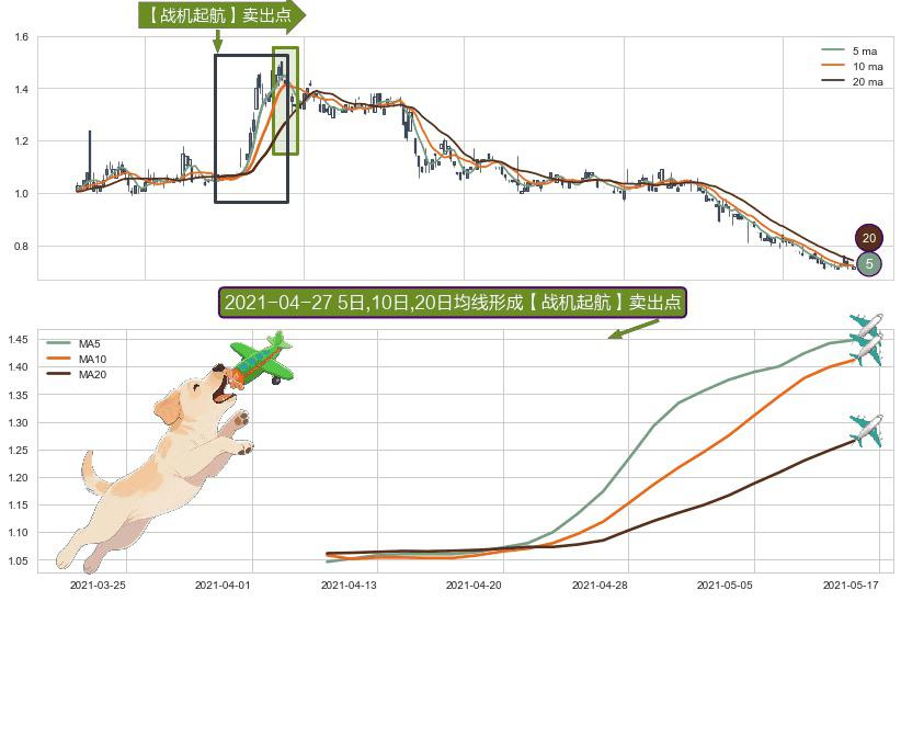 ⚀ 2021-04-09日-2021-05-11日显现 5日-10日-20日均线 【战机起航】卖出点 看空信号,后市看跌,卖出