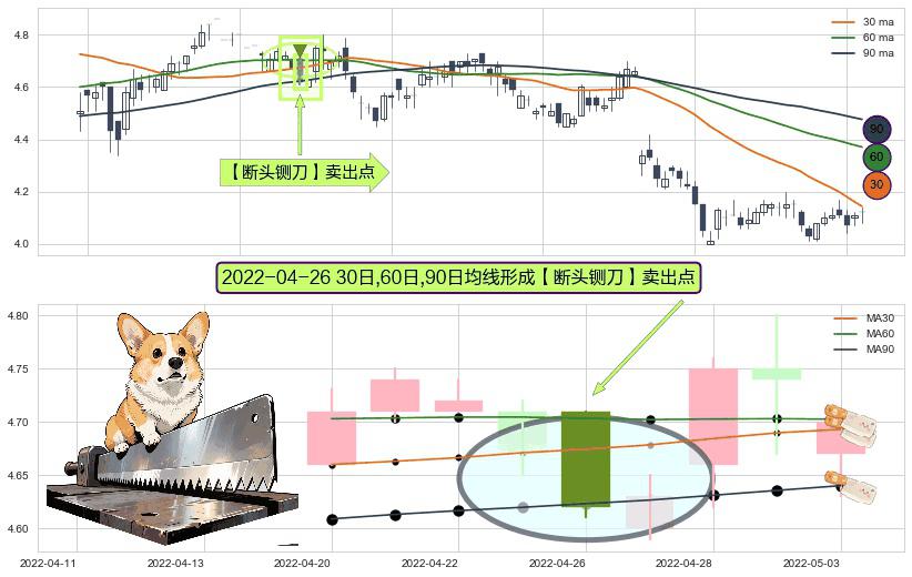 形态多维评估: ⚀ 2022-04-26日显现 30日-60日-90日均线 【断头铡刀】卖出点 看空信号,后市看跌,卖出