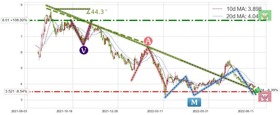♘ 阻力价格位8.01,可信任强度82.29%,距离最后交易2022-08-12形成的收盘价格3.850相差 +108.00%