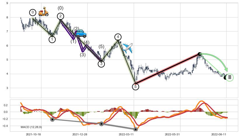 ➣ 第一, 三, 五浪下跌动能逐渐【增强变大】,趋势不断加固