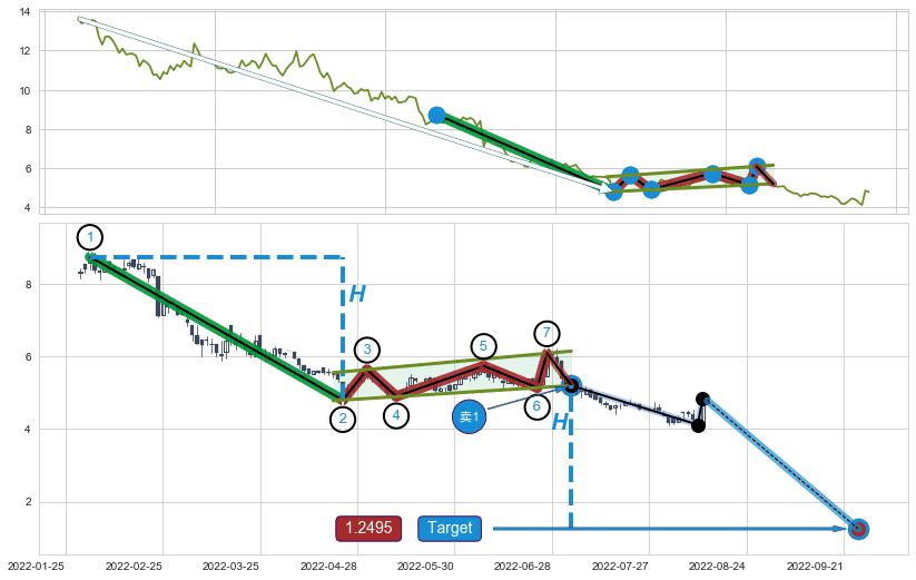 ➣ 最小中继整理跌幅→𝐇: 3.950 (𝐇旗杆的长度:旗杆起点→顶点)