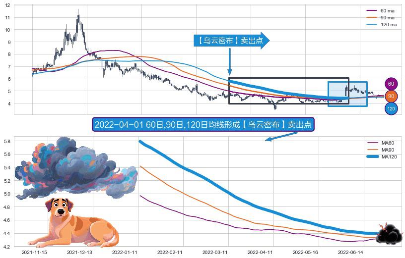 形态多维评估: ⚀ 2022-01-12日-2022-06-27日显现 60日-90日-120日均线 【乌云密布】卖出点 看空信号,后市看跌,卖出