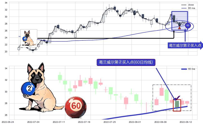 ⚀ 2022-08-10-日显现 葛兰威尔均线 60日均线 第②买入点 上升趋势的中继信号,后市看涨,买进信号